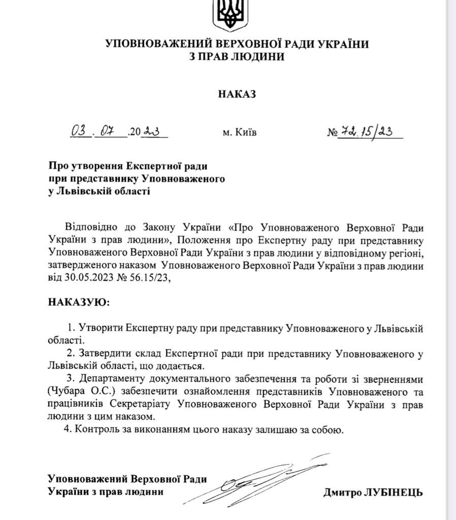 Яго прызначэнне афіцыйна пацверджана загадамі Упаўнаважанага Вярхоўнай Рады Украіны па правах чалавека №72.15/23 ад 03.07.2023 і №6315/205 ад 23.06.2025.